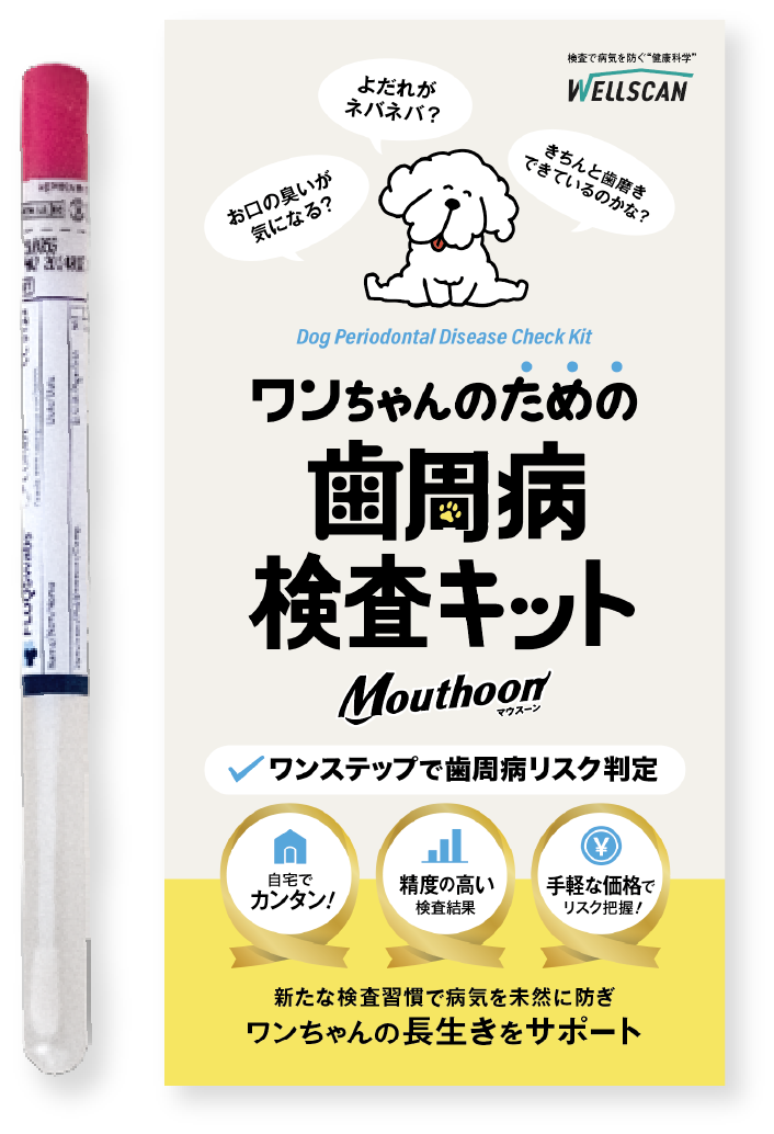 出典:ワンちゃんのための歯周病リスク検査キット Mouthoon (マウスーン)