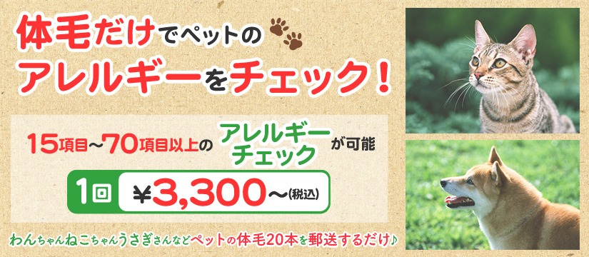 ワンちゃんの体毛を郵送することで、アレルギーの有無を調べられます。