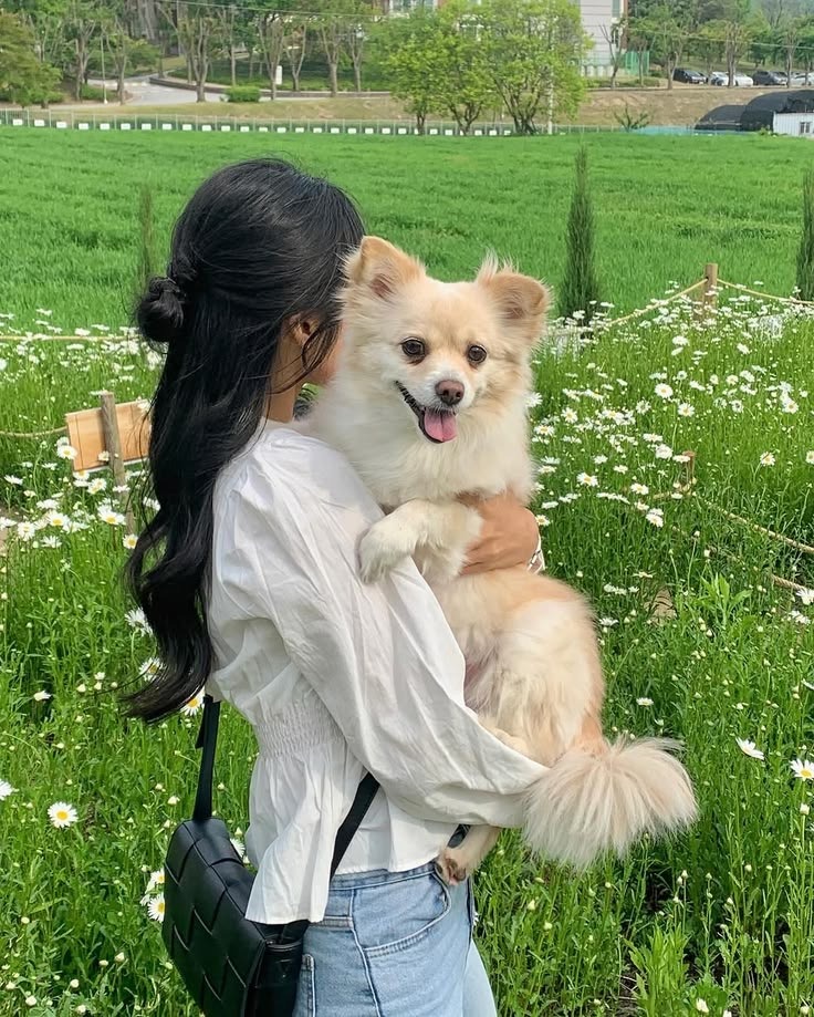 まずは王道!ワンちゃんをぎゅっと抱きしめて、顔を埋めるポーズ。もふもふ感が出てワンちゃんの可愛さもしっかりアピールできる、愛らしさ抜群の構図です。